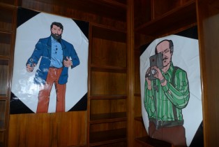 In quell’occasione scegliemmo di esporre i miei primi Cieli di bosco che, in quell’inverno, erano lividi di freddo (mi ero appena trasferito a Milano) e di paura (il bosco come metafora dei pericoli del vivere). Poi, piano piano, la primavera è tornata, dentro e fuori. Il cuore si è scaldato. Nel bosco è entrata più luce e i miei cieli sono stati i soggetti di tre personali e di altre mostre meno monotematiche. Il contrappasso (ancora in atto) è dalla natura alla cultura. Sono tornato in Città, nelle città! In quelle in cui ho vissuto e in quelle in cui vivrei e, per raccontarle, ho scelto gli Eroi locali, quelli dei monumenti: vite del passato elette ad esempio per il futuro : materializzazione tridimensionale di quello che Jung definisce inconscio collettivo. Ma attorno ai monumenti aleggia oggi, come il vento nel bosco, un sentimento sottile di passato remoto, ora gli esempi sono dietro, davanti, a gli schermi. Gli Eroi nascono e muoiono nei tempi brevi che la cultura del consumismo, ritma. E questo rappresenta per me un motivo in più per andare a fotografarli, catalogarli, leggerli nei loro dettagli. Per questa nostra piccola, stravagante, mostra ho scelto un materiale che con il tuo filo, potessi facilmente attraversare per raggiungerci. Sono carte che vengono dai miei cassetti, restate, sedimentate, che però mi pare -io spero- non si siano perse di significato, non abbiano smesso di parlarti.